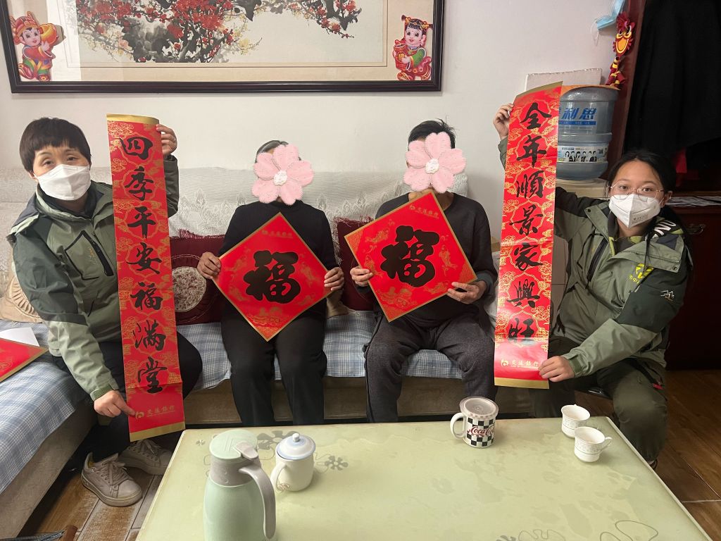 活动中,社工们详细了解了探访对象近期的身体状况和生活情况,与探访对象唠着家常、聊着天,认真倾听老人们的心声,使其在倾诉中缓解内心压力;在行动不便的居民家中,社工们还帮助他们打扫卫生、贴春联、贴窗花,让困难群众感受到浓浓的年味,年近80的张大爷握着社工的手不停的表示感谢:“你们想得真周到啊!也祝你们新年快乐……”。在探访过程中,社工在送上新年祝福的同时还向他们介绍了社工站春节的放假安排,并叮嘱他们保重身体,在疫情“转段”期间要做好个人防护,遇到急事、难事及时联系社工站或社区居委会。