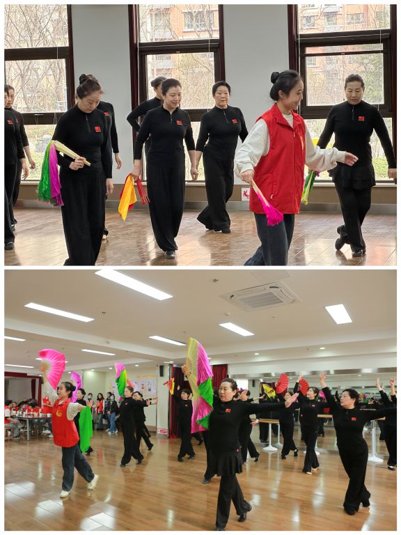 舞蹈学院和华青艺术团舞蹈队就舞蹈文化、舞蹈技巧进行交流,对舞蹈等文娱文化在促进社区治理,满足老年群体精神需求的作用进行探讨,并展演了“特斯河之赞”、“九儿”、“最炫民族风”等舞蹈。现场欢声笑语不断,优美的舞蹈不断,舞蹈队队长杨庆利表示“感谢唐冶街道社工站、舞蹈学院和居委会为我们提供了交流学习的机会,让我们更加热爱舞蹈、热爱生活、热爱社区”。