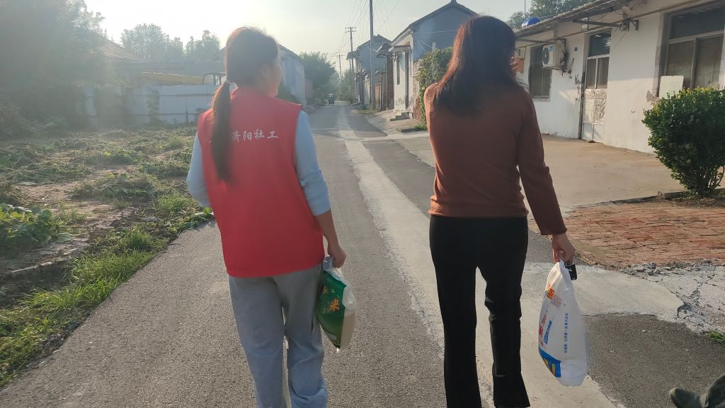 活动中,社工们走访慰问了翟家村的五保老人,为其送去了慰问品和节日祝福,社工们向五保户老人询问生活情况,了解他们生活上的困难,与其亲切交谈。同时叮嘱老人在季节变化时注意身体保暖,饮食要注意卫生,行动要注意安全。