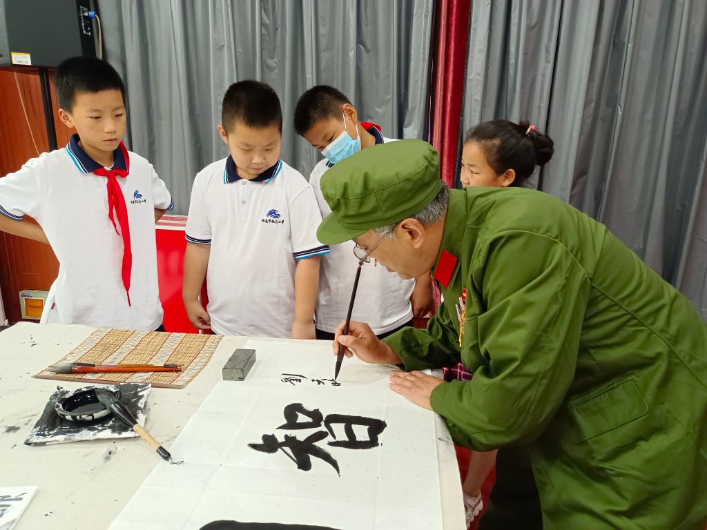 看,这是“明天的期许”。“爷爷,我以后会好好学习,您今天讲的每一句话我都记住了!”孩子们围绕在刘天晴老师的身边,询问着故事的细节,注视着荣誉的军章,一时间稚嫩的声音填满了活动现场。