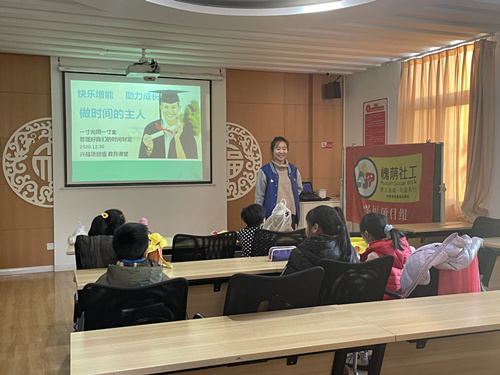 2020年12月30日下午,山泉驻槐荫兴福项目组社工在兴福街道党群服务综合体多功能室开展了“快乐增能·助力成长”教育课堂活动,本次的主题是“做时间的主人”,此次活动共有8名社区青少年参加。
