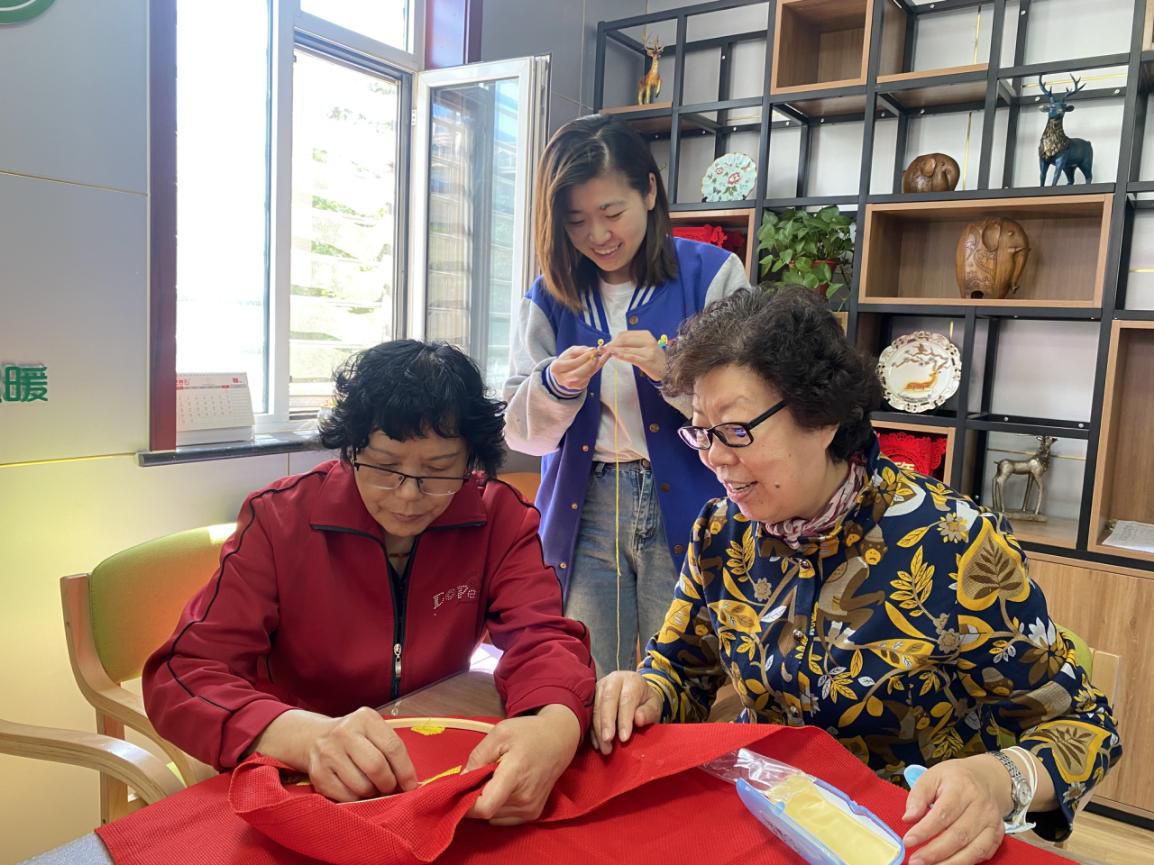 活动开始的前一天,青年公园街道社会工作服务站的社工接到了一个这样的电话,有位党员表示自己腿脚不便,但是非常想参与绣党旗,以此表达对党的热爱和感恩之情,这对她来说是一次非常重要的活动,并不想错过。社工了解到其情况后,便在活动前夕就带着党旗送到党员家中,与党员共绣党旗,将这份感恩之情,在一针一线中凝聚。
