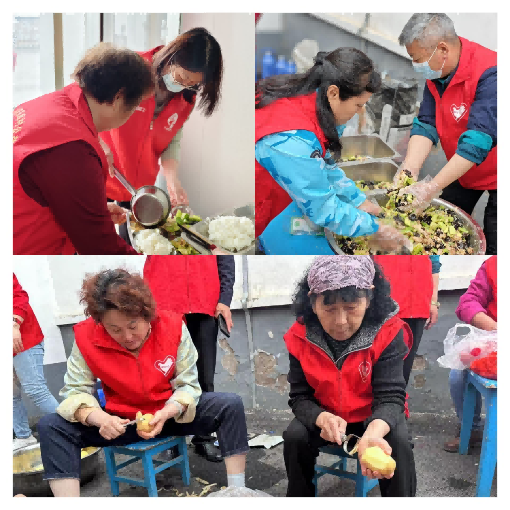 志愿者们在老人到来之前收拾厨房、洗菜切菜、打扫卫生,为老人们提供干净整洁的用餐环境。