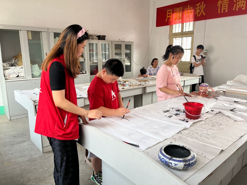 书画公益课堂开设了书法与国画两门课程。每周一、三、五下午,小同学们齐聚在街道文化站院内,吸收书法的养分,感受国画的韵味。社工站将朋辈互助、共同成长的理念贯穿其中,通过老师集中辅导、现场示范、零距离交流等方式进行授课,实际练习等互动形式带动孩子们共同参与。孩子们更是在过程中遇到困难相互帮助,进一步增强彼此的交流,学会朋辈之间相互尊重、接纳分享、助人自助。