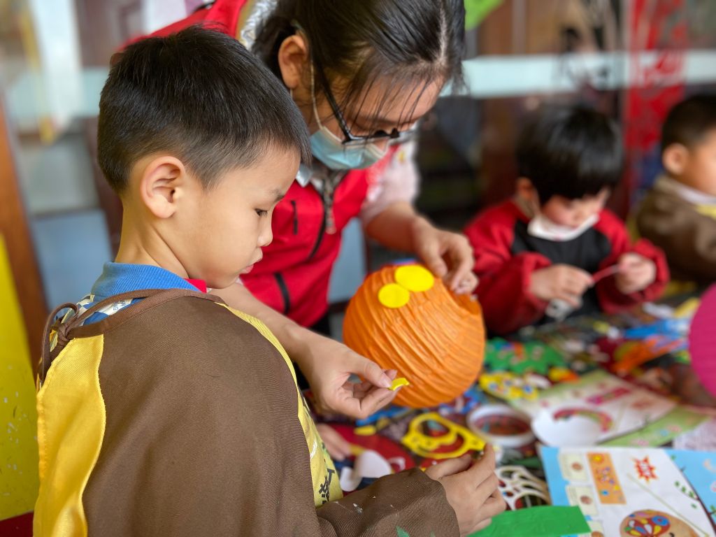 在接下来的制作花灯环节,社工将准备好的DIY手工材料分发给各个小朋友,简单跟他们介绍花灯制作流程后,小朋友们便迫不及待地开始忙活起来。社工们发现有的小朋友看着材料露出疑惑的表情,就主动过去跟他们一起制作,教室里充满了欢声笑语。经过一个多小时的制作,一个个喜庆又漂亮的灯笼完成啦!小朋友们爱不释手地展示各自的劳动成果,脸上洋溢着幸福的笑容,纷纷与自己的花灯合影留念。