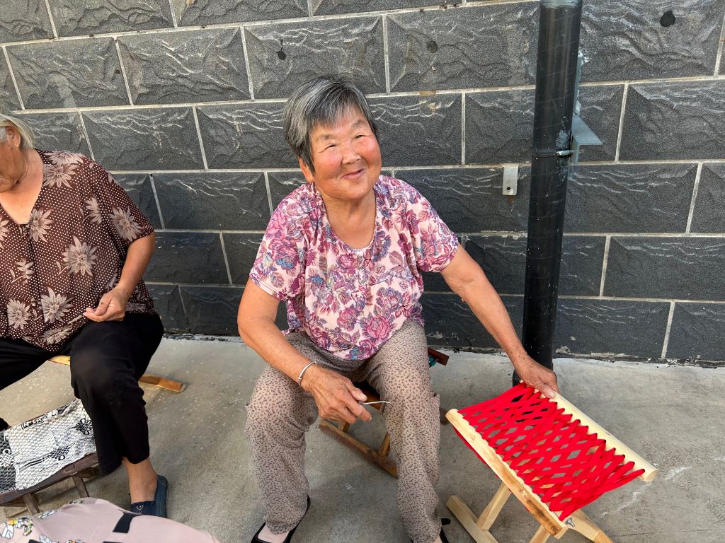 马扎俗称“杌扎、撑板凳、杌扎”,据悉早至汉朝以“胡床”称。2600年前发源于齐国故都,是一种小型的坐具,腿交叉,上面绷帆布或麻绳等,可以合拢,便于携带。可以说,马扎几乎是所有老年人喜欢的坐具,也有很多老年人甚至年轻人擅长穿马扎。因此,穿马扎活动一开始,在场的老年人就都一副跃跃欲试的样子,想要大展身手,甚至颇为骄傲地说:“我穿马扎的手艺都有好几十年啦,以前家里的马扎都是我自己做的,就是现在很久没穿过啦,手艺才有些生疏。”
