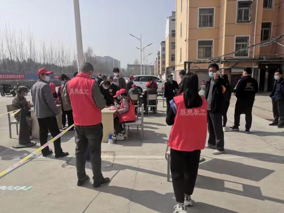 早上8点钟居民们陆续来到广场上等待做核酸检测,社工们在检测点上,对来检测的居民进行信息登记和录入系统工作,引导居民安全有序完成采样,对于行动不便的老人,社工配合医务人员入户随访、采样,短时间内高效率完成了核酸检测工作。