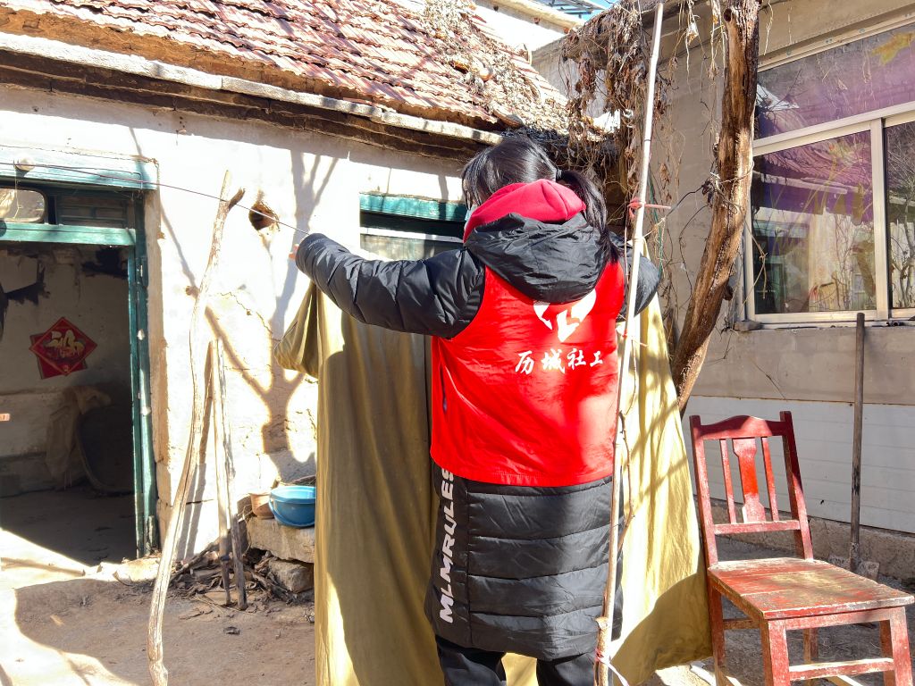 再次来到“小院”,孙大爷开心的合不拢嘴,自从针对孙大爷的个案结束以后,他的生活发生了很多变化,原本独居的他愁容满面,如今总是洋溢着微笑,面对生活越来越乐观。对于独居的老人,最渴望的就是陪伴,看到社工的到来,孙大爷很快就打开了话匣子,社工耐心倾听着近期发生的种种。“拉家常”之余,社工为服务对象清理了小院的卫生,并将其棉被进行了晾晒,过程中,社工与服务对象的交流未曾间断,欢声笑语驱散了冬日的寒意。