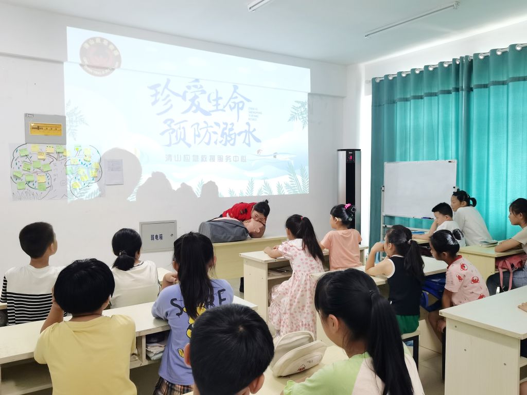 活动开始后,救援队老师先用通俗易懂的话语向孩子们讲解了在河边等区域游泳玩耍的危险性,告诉孩子们“六不准”等原则,并通过观看近几年来发生的儿童溺水死亡案例视频加强警示作用。随后,老师采用先讲解后演示的方法,向孩子们科普了心肺复苏和人工呼吸的具体操作方法,孩子们积极参与,在一问一答和互动演示中,不仅增强了学习积极性和主动性,更是提高了对生命安全的重视程度。