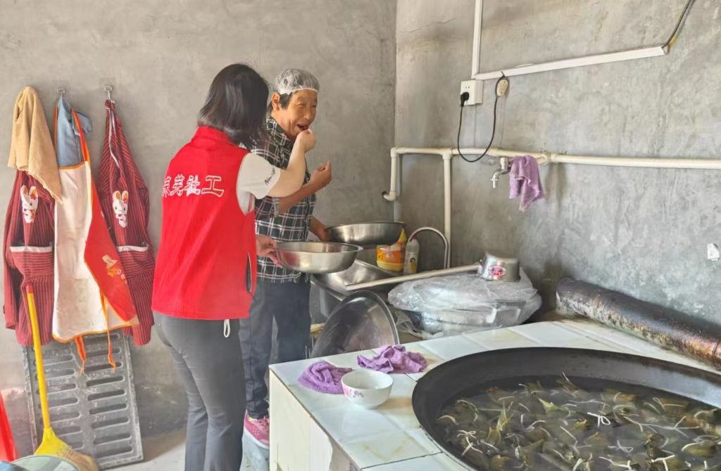 粽子包好后放到大锅中进行焖煮,经过一个多小时的时间,飘逸着一股清香的粽子出锅了,老人们看着自己亲手包的软糯香甜的粽子,露出幸福而满足的笑容。