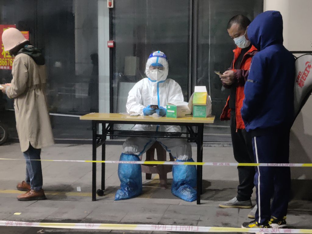官扎营社工站的社工坚守在疫情前线,协助街道工作人员设置测温区、等候区、采样区等规定区域和一米间隔线。核酸采样现场,社工们严格落实疫情防控相关要求,为社区居民进行扫码登记,对没有智能手机的老人手动登记信息,帮助群众快速、有序进行核酸检测,最大限度减少群众等候时间。