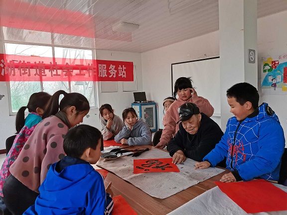 在春节,家家户户都有张贴春联的习俗,红红火火的春联给节日增添了喜庆的气氛。1月19日上午,玉清湖街道社工站(以下简称“社工站”)邀请到乡村能人——耿广礼,带领青少年更加直观和深入的了解“贴春联”以及“贴福字”的春节传统文化习俗。
