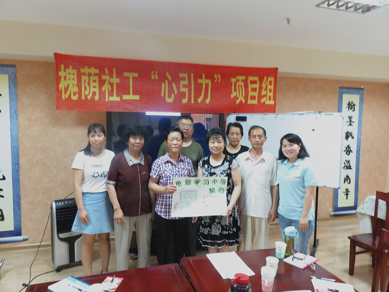 槐荫社工“心引力”项目组以家园中心为平台,辐射社区居民,运用社工专业元素,打造“健康-家园”品牌。“快乐e站”电脑学习小组为“健康-家园”框架下“学而益”模块服务内容之一,旨在通过教学形式,使社区居民体验学习之趣,享受学习之益,促进居民身心健康。为了更多的社区居民受益社工专业服务,项目组于6月21日在家园中心举办“快乐e站”第八期电脑学习小组开班典礼。