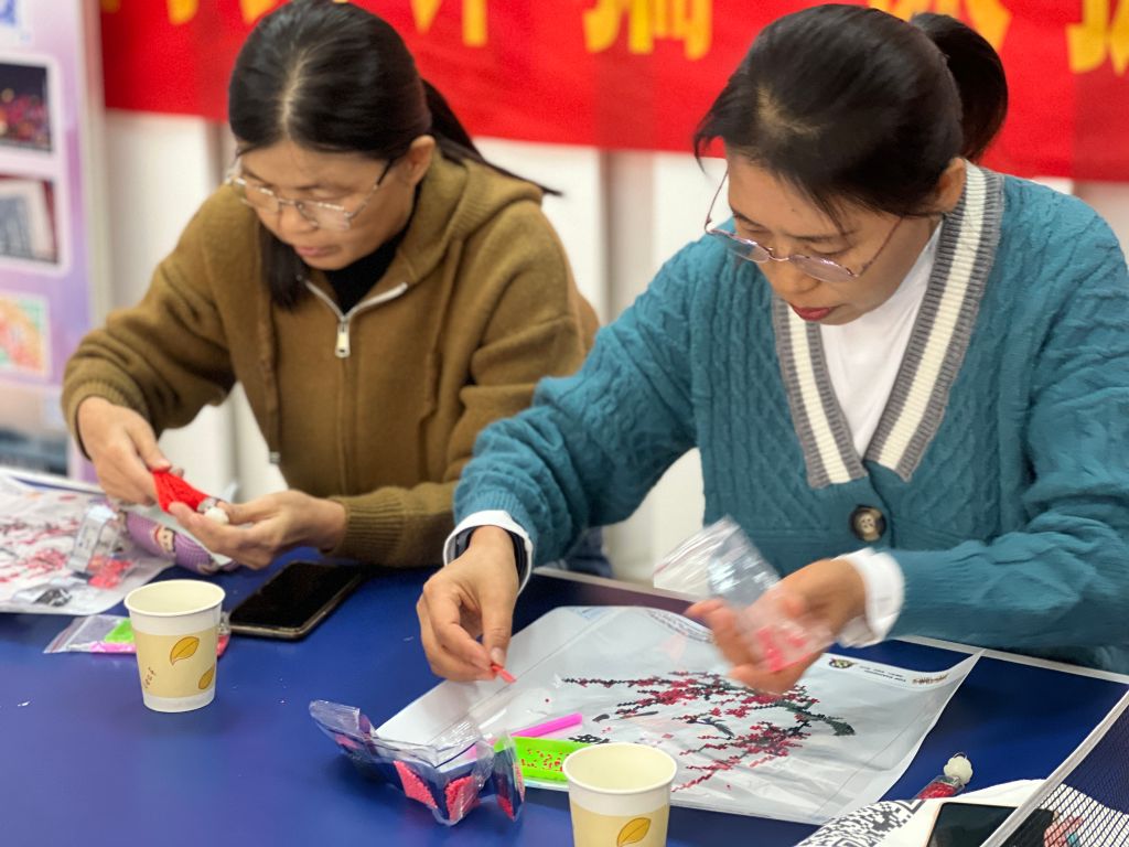 随着属于自己钻石画的发放,组员们迫不及待的开始为那尚未完成的画作增添新的色彩,钻石画上色彩一步一步变得鲜艳,而面对绘画活动途中出现的困难和问题,组员们齐心协力,大家一起讨论应对方法,互帮互助,克服困难。这种创造性,互助性的过程给组员带来一种愉悦和满足感,组员的关系更加密切,成就感油然产生。