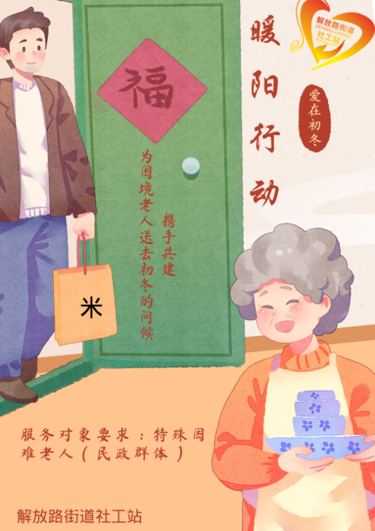 秋风扫落叶,严寒飞雪花,时间的脚步匆匆,眨眼间,冬天就要来了。为了更好地保障困境老人的生活,为其送去初冬的温暖,解放路街道社工站链接到历下总站募集的一批中兴通讯公益基金会捐赠的爱心大米,联合各社区开启暖阳行动,关怀慰问社区困境老人。