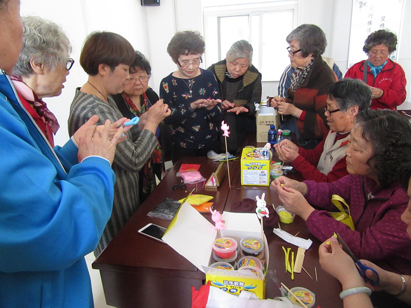 老师先介绍生肖兔的捏制重点及注意事项,并鼓励老人大胆创新,根据个人喜好进行配色和造型。随后正式开始学习。