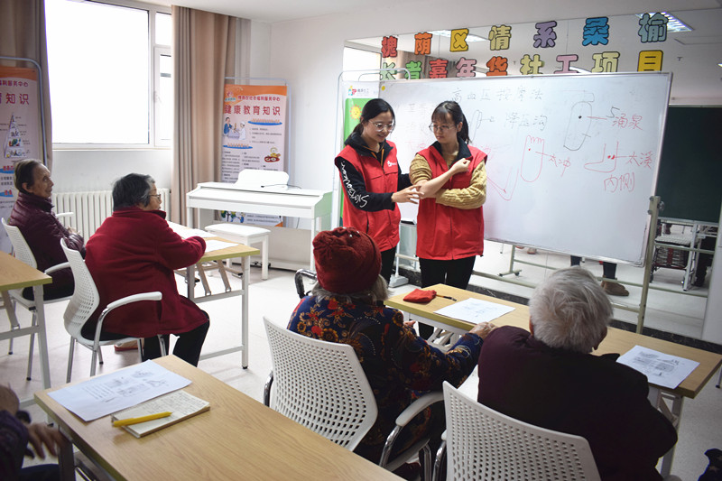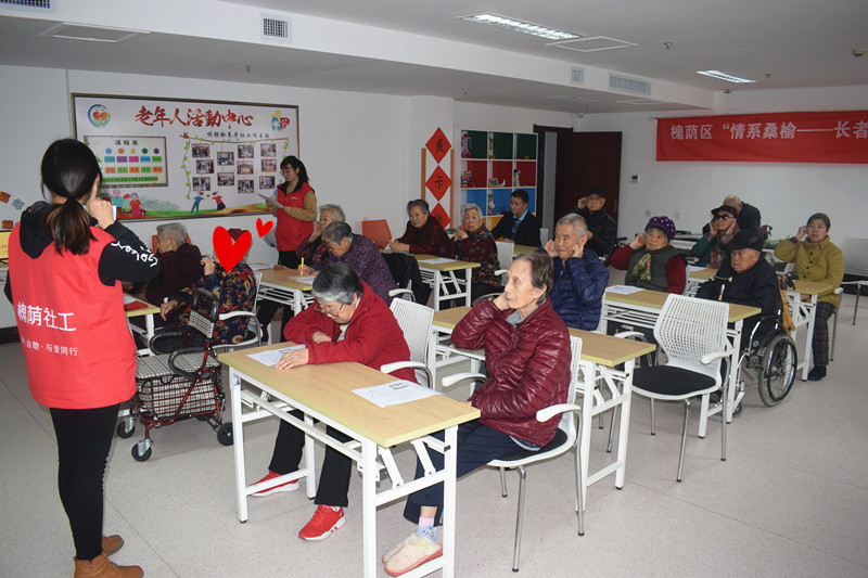 在上次活动中社工向老人分享了高血压患者在生活中的注意事项,活动后一位老人找到社工说自己希望学习用穴位按摩控制高血压的方法。社工综合考虑了中心高血压患者的人数、老人需求等因素,确定可行后于1月11日在福利中心三楼老年大学开展了“按摩控制高血压,老人纷纷乐开花”活动,向老人分享通过穴位按摩控制高血压的方法。