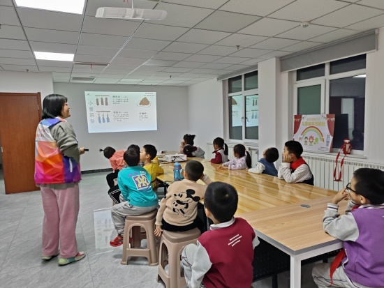 “雪雪落无痕,小雪时节都有哪些习俗、特点呢?又有哪首古诗词描写了小雪呢?有哪位小朋友可以告诉我呀?”“我!冬腊风腌,蓄以御冬,我奶奶要灌肠腌咸菜!”“我我我!我刚学了一首诗,莫怪虹无影,如今小雪时!”活动现场,不乏小朋友踊跃互动,但社工细心发现一名内向的小朋友始终在犹豫,在几次分享过后,社工通过不断的眼神肯定、轻声鼓励,最终勇敢的举起小手,成功分享了自己的体会,随着他的落座,小背挺得更直,眼神也更加坚定。