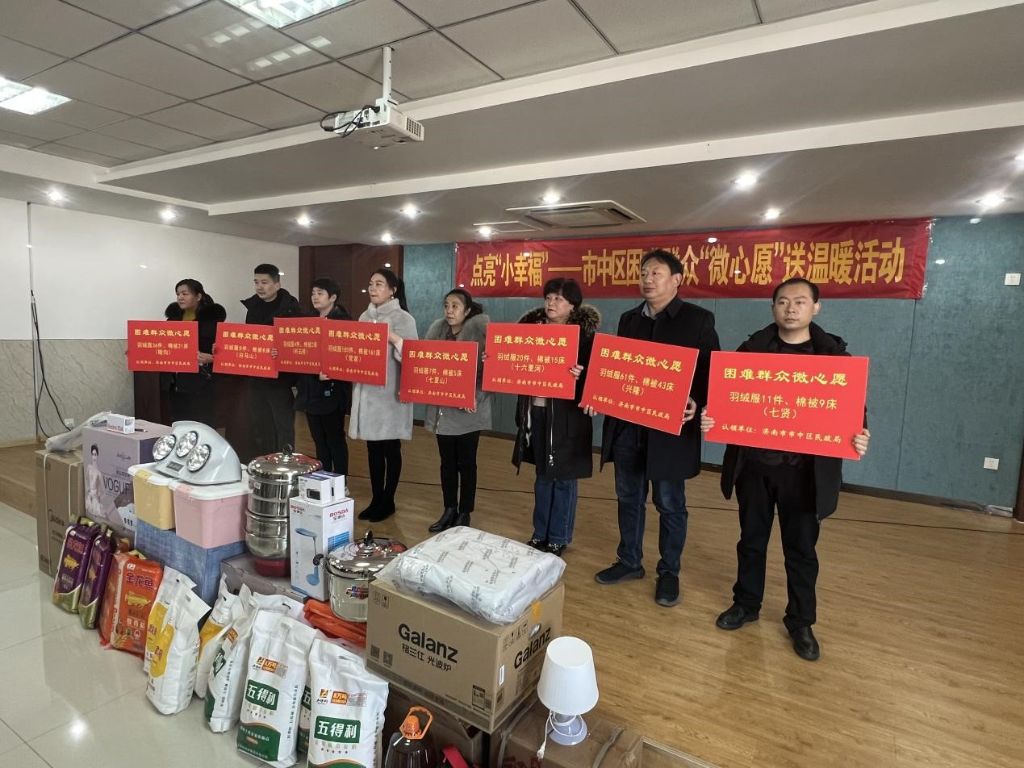 市中区民政局发动爱心企业、社会组织等公益慈善力量,认领了辖区困难群众的微心愿,并于2月15日组织开展点亮“小幸福”——市中区困难群众“微心愿”送温暖活动仪式。杆石桥街道社会事务科和社工站工作人员将爱心物资领回,及时为辖区困难群众圆梦,点亮了他们的“小幸福”。