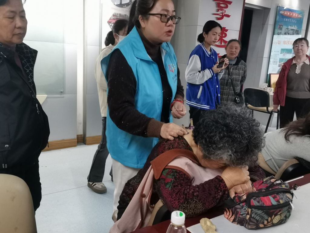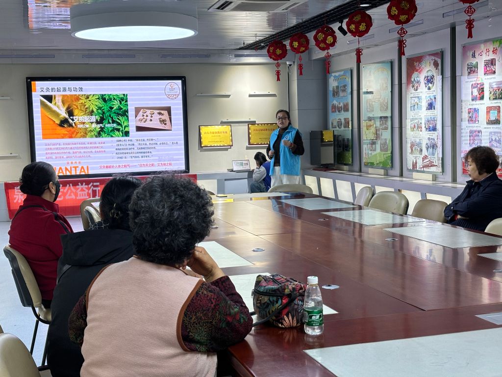在前期小组活动中社工收集到组员相关健康知识需求,其中不乏有居多成员表示自己经常会出现腰酸背痛、腿疼肩周炎等等,社工链接相关资源邀请专业老师分享艾灸知识以达到增加养护知识提高自我健康养护能力的目标。