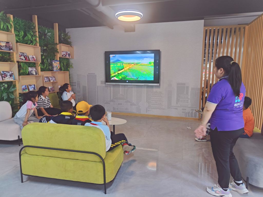 在活动当中,对于如何更高效率、更高质量的将我们想要表达传播出去,社工选取了数字媒体方式。当下进入数字化时代,利用数字媒体这些新手段带领儿童回顾乡土文化是大势所趋,同时比起单纯的讲解也能更好吸引儿童的注意力。活动前期社工通过搜集相关的网络视频资料,剪辑相关短片在活动中播放,这些短片展示了家乡的美丽风景、悠久历史和独特文化。通过短片视觉呈现,儿童能够更加深入了解家乡的文化底蕴和独特之处,增进对家乡与社区的认同感和归属感,同时在社工的引导之下引出儿童对“地缘”这一概念的思考。