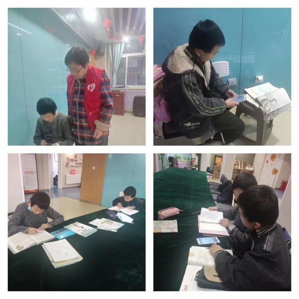 社工了解到并联系到王女士,告知可以让孩子来社工站的小组工作室上课,这里有网络,有暖气。社工安抚了王女士焦急的心情,并说有什么问题可以问我们社工,我们会帮着协调,不用担心。第二天王女士把孩子送到了社工站,并感谢我们的帮助。两个孩子在此环境中积极的投入到了学习当中,在孩子线上网课中,孩子用实际行动践行着停课不停学,学习中遇到了很多的学习问题,社工并帮助一一解答,让孩子安心上课。