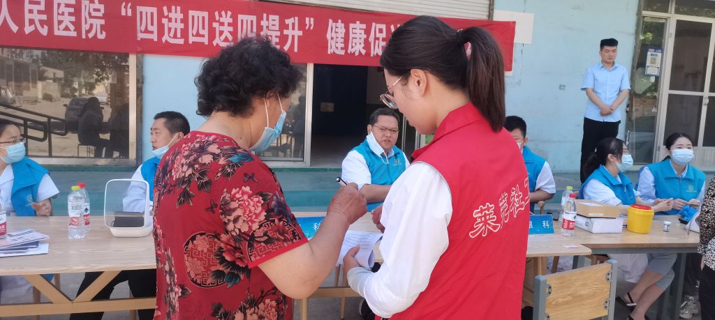 2023年6月8日,凤城街道社工站联合凤城街道城西管区、济南市莱芜人民医院在小曹村社区党群服务中心为社区居民进行“四进四送四提升”健康促进义诊活动。