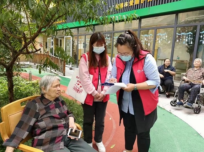 (制锦市街道社工给老人做需求调研)