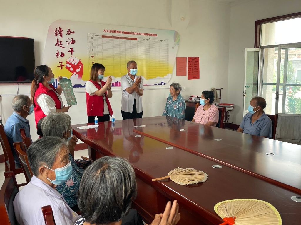 一转眼,“助力疫情防控,推动健康科普”老年人教育小组进入尾声。7月8日,大王庄镇社工站开展了最后一节“回顾小组”活动。第一节相互认识。老人们通过击鼓传花的游戏自我介绍和相互认识,进行才艺展示并共同制定小组契约。由于彼此不熟悉,大家都比较拘束,表现得较为沉默。