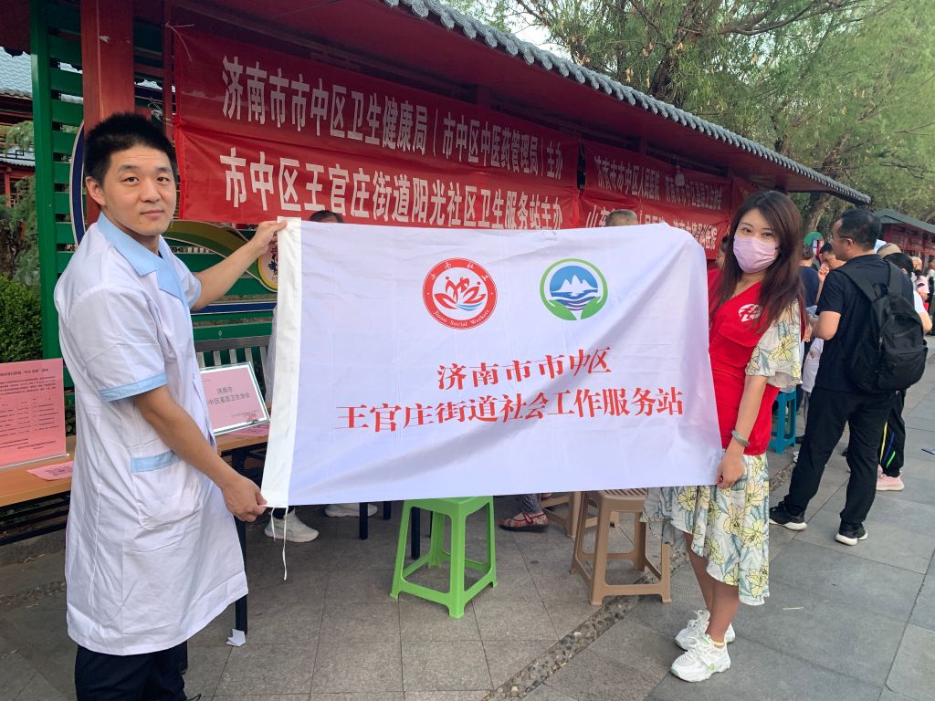 为了提高居民对中医药文化的认识和了解,增进居民对中医药的认知和认同感,济南市市中区王官庄街道社工站链接辖区阳光社区卫生服务站,于2024年6月24日晚6点在大众广场举办了第一届“中医药文化夜市”大型健康义诊宣传活动。