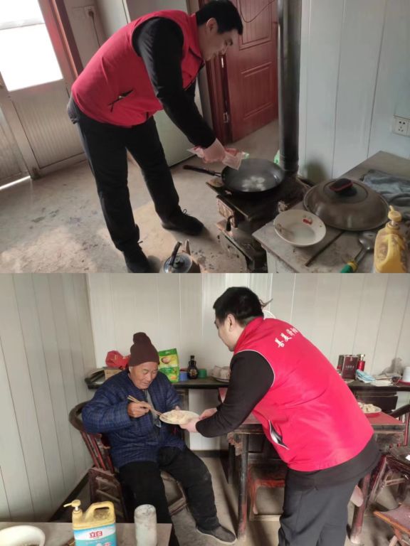 我们社工与志愿者一行人还来到了另一位大爷家中,家里只剩老两口互相依靠,我们为其带去了水饺等食品。正值午饭时间,我们为老人亲自下锅煮水饺,让老人深切地感受到了我们关爱的暖意。做饭过程中我们还亲切的与老人交流,老人给我们讲了年轻时的往事。交流过程中老人时刻透露着幸福的笑容。