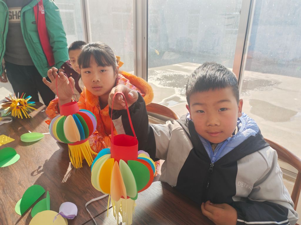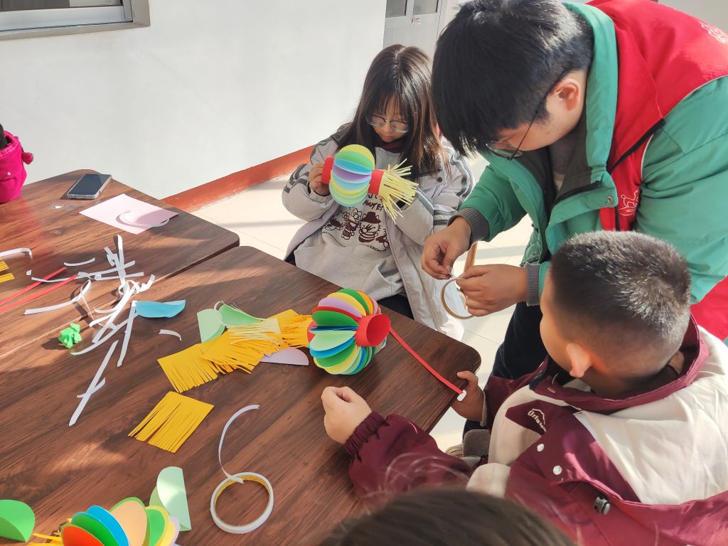 在第二节活动中,首先,社工带领组员通过回顾上节内容,巩固了已建立的小组关系和规则意识。随后,社工带领组员动手制作灯笼。组员在社工的帮助下,利用彩纸、剪刀、胶带等材料,充分发挥自己的想象力和创造力,制作出色彩缤纷的灯笼。组员兴奋地表示:“这是我第一次自己做灯笼,真是太有趣了!我要带回家,给爸爸妈妈看!”