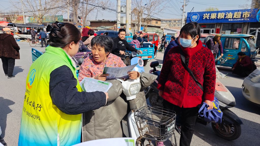 除此之外,社工也利用辖区集市平台,走入集市为来往居民派发社会救助政策与社工站服务宣传单页,为其进行救助政策宣传与解读服务的同时,也增进辖区居民对社工站服务的了解与认同,为后续社工站慈善市集服务做好前期宣传工作。