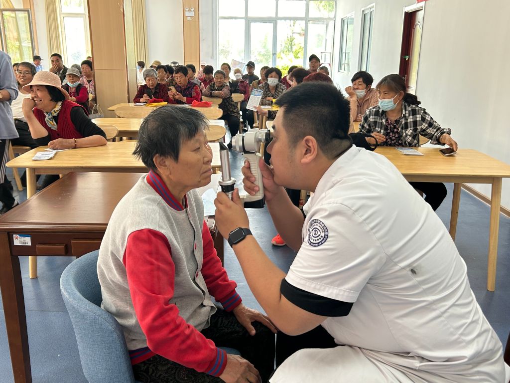 活动当天,社工们早早地来到活动现场,与残联的工作人员紧密合作,布置好义诊场地,准备好必要的活动设施和物品。此次义诊对象除了残疾人、老年人以外,更面向其他村的村民,一切准备就绪后,村民们也都陆续来到现场,等待接受义诊。义诊分别设置了白内障讲解、视力测试、眼知识咨询、眼底黄斑病变检查四个步骤。过程中,社工与服务对象亲切交谈,详细询问老人们的身体状况。医护人员耐心细致地为每一位服务对象进行检查,询问他们的身体状况和生活习惯,为服务对象检查,并根据检测结果给出相应的健康建议。除了基本的医疗检测外,医生们还针对服务对象的特殊需求,提供了个性化的健康咨询服务,并详细解答了老年人在日常生活中遇到的眼健康问题,教授了一些实用的眼睛保健技巧。