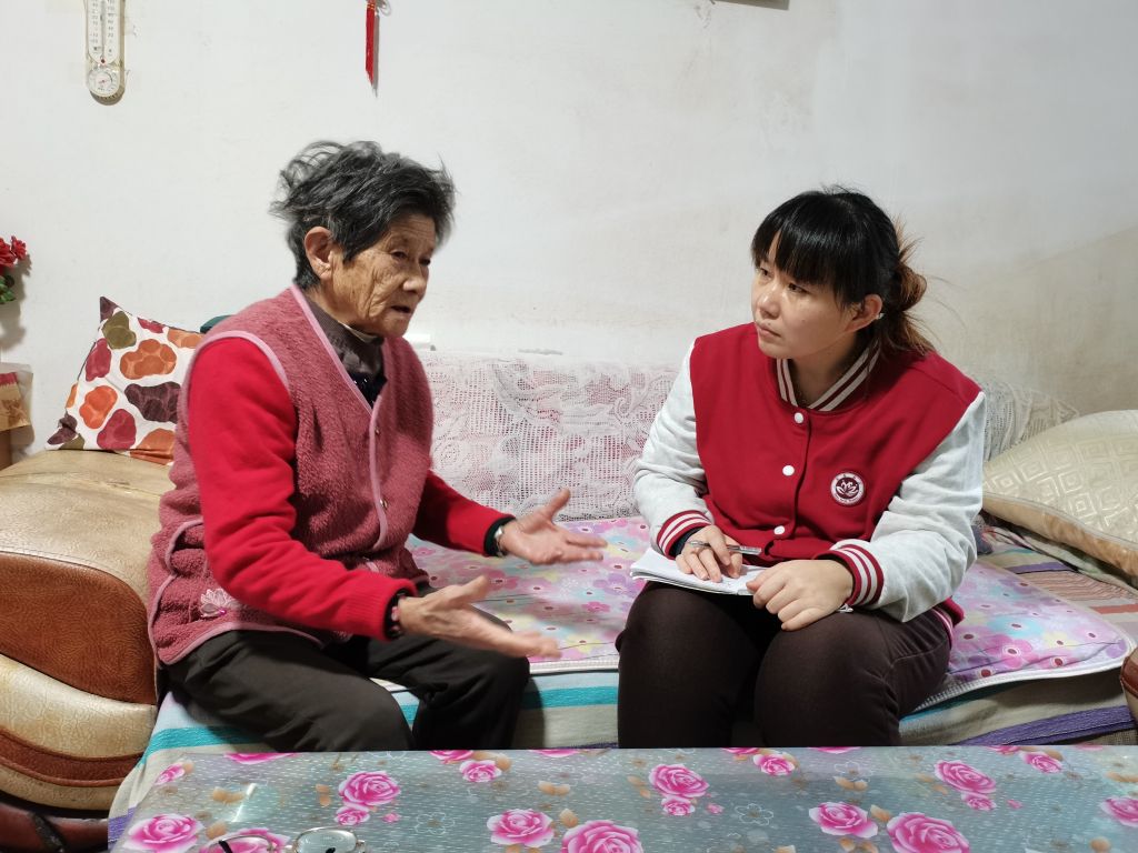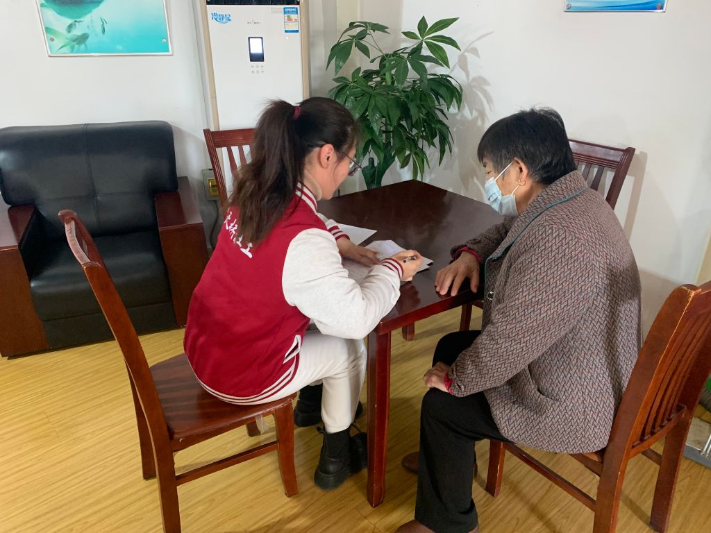 为此,社工站启用以“社工+志愿者”服务模式,深入社区入户走访独居高龄老人。在与老人面对面访谈过程中,社工运用倾听、共情、简单复述等基本疏导技巧,就老人精神状况、身体健康状况、日常的生活照料等方面,用通俗易懂的话语与老人们进行聊天式谈话,慰藉老人孤独的心灵。