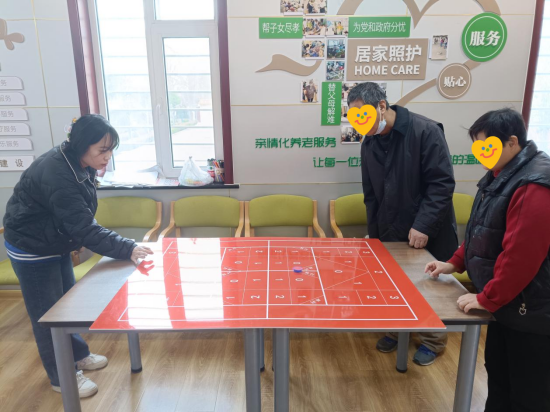 “你们小的时候弹玻璃球是怎么玩的,”问题的抛出扑面而来的是来自不同年代不同地域的规则与玩法,甚至于弹球与击球的方式也不尽相同,对于社工复刻的弹玻璃球的道具设计社区居民在体验玩乐的同时给予真诚的用户感受反馈,“底盘铺置的沙土质地太软”,“球洞的位置设置不合理”,“比赛规则过于复杂”,除此之外,社区居民先后体验了“弹指网球”与“瓶盖冰壶”两个比赛项目设计并对两个服务项目表达了自身体验后的感受与建议,来自于社区居民体验后的真知灼见将会转换为重要的元素出现在服务设计之中。