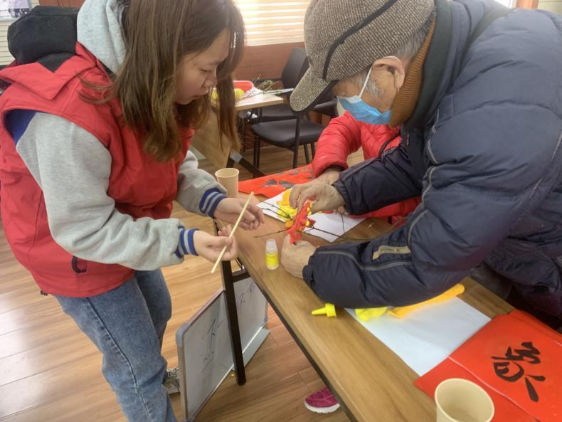 新春佳节来临之际,青合社工站开展了“点靓新春模样,我们“年”在一起——残障人士手工舒压小组活动。参加本次手工互助小组的以辖区内聋哑老人为主,活动采取社工引导,组员互助协作的形式展开。大学生手语志愿者参与本次活动,通过手语翻译、手语交流与服务对象进行顺畅地沟通。