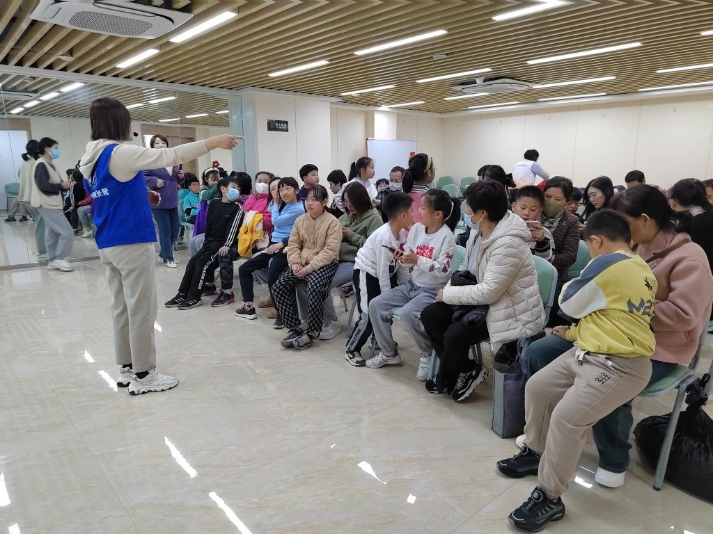 活动伊始,宋老师便以她那充满活力的语言和生动的肢体动作,迅速点燃了现场的氛围。她仿佛拥有一种魔力,让孩子们在欢声笑语中自然而然地投入到热身游戏中。孩子们和志愿者们围成一个大圈,宋老师站在中间,通过“木偶人”、“狗蛋回家”等模仿游戏,引领着他们做各种有趣的动作,激发孩子们的参与热情,孩子们学得有模有样,欢声笑语此起彼伏。在这个过程中,不仅孩子们的身体得到了充分的舒展,他们的心情也变得格外愉悦。