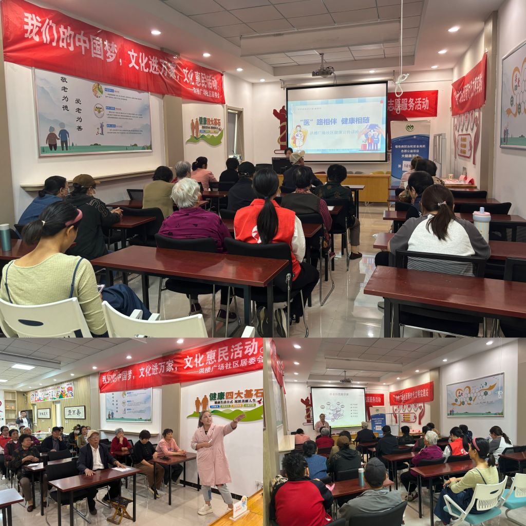 落絮游丝四月春,风吹雨洗一城花。为提高居民的健康意识,普及健康知识,帮助居民建立良好的生活习惯。4 月 21 日,洪家楼街道社工站联合洪楼广场社区成功举办了一场以“‘医’路相伴 健康相随” 为主题的讲座活动。活动现场气氛热烈,吸引了众多居民踊跃参与。