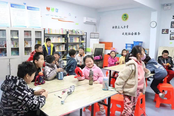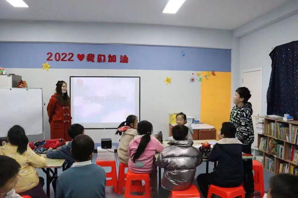 想让孩子们轻松快乐的学习英语,趣味英语互动小游戏是个不错的选择。社工带领大家进行击鼓传花,现场气氛十分活跃。社工先将玩偶放在了第一位同学那里,然后开始放音乐,学生传递玩偶,当音乐停止的时候,玩偶传到了哪个同学手中,那么他就要站起来用英文自我介绍。在传递玩偶的过程中,花费的时间比较长,或许只是为了让同学们简单的自我介绍,但是其所带来的影响是深远的,可以迅速活跃气氛,让孩子可以大胆进行英文表达。