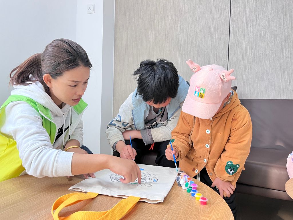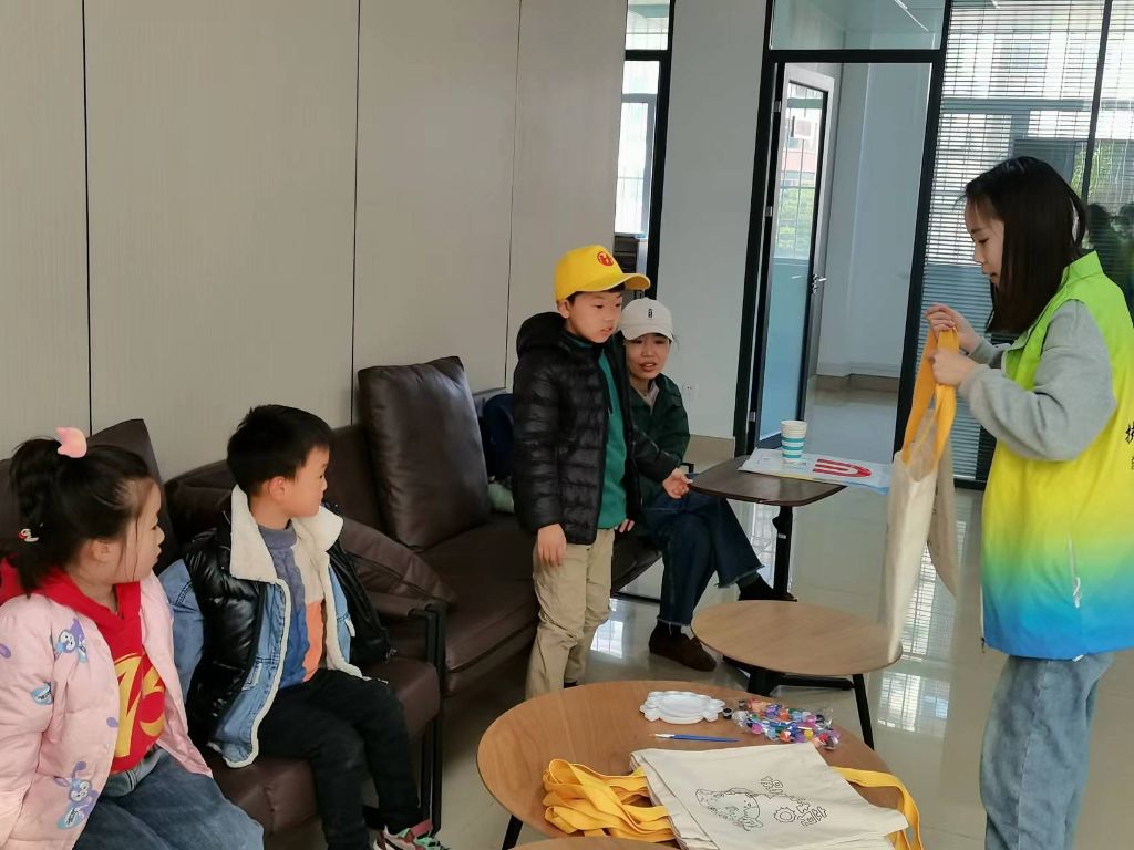 小组开始前,社工向组员介绍此次小组主题以及小组的内容安排。通过一系列的破冰小游戏,打破人际关系的距离,透过环保小知识竞赛游戏让组员在短时间内增进熟识度。随后社工向小组员讲解塑料袋对环境的污染,播放环境保护科普视频等,在宣传低碳环保的同时,号召组员使用可循环利用的帆布袋,并指导组员们自己手绘帆布袋,小组员们在一笔一划之间,体验“艺术创作”的乐趣,在志愿者的指导下执笔开画,定位、打型、调色、勾线……有的画垃圾分类,有的画美丽花儿,有的设计环保标语……随着一款款手绘帆布袋的顺利完成,小组员们开心地分享着第一次手绘的心得,欢声笑语,热情洋溢。