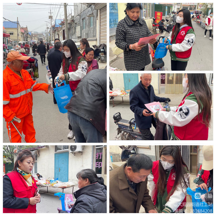 大观园街道社工站利用赶大集人员流动量大的特点,创新宣传形式,贴近群众,开展零距离送政策活动,将社会救助等惠民政策宣传到位,送到百姓身边。