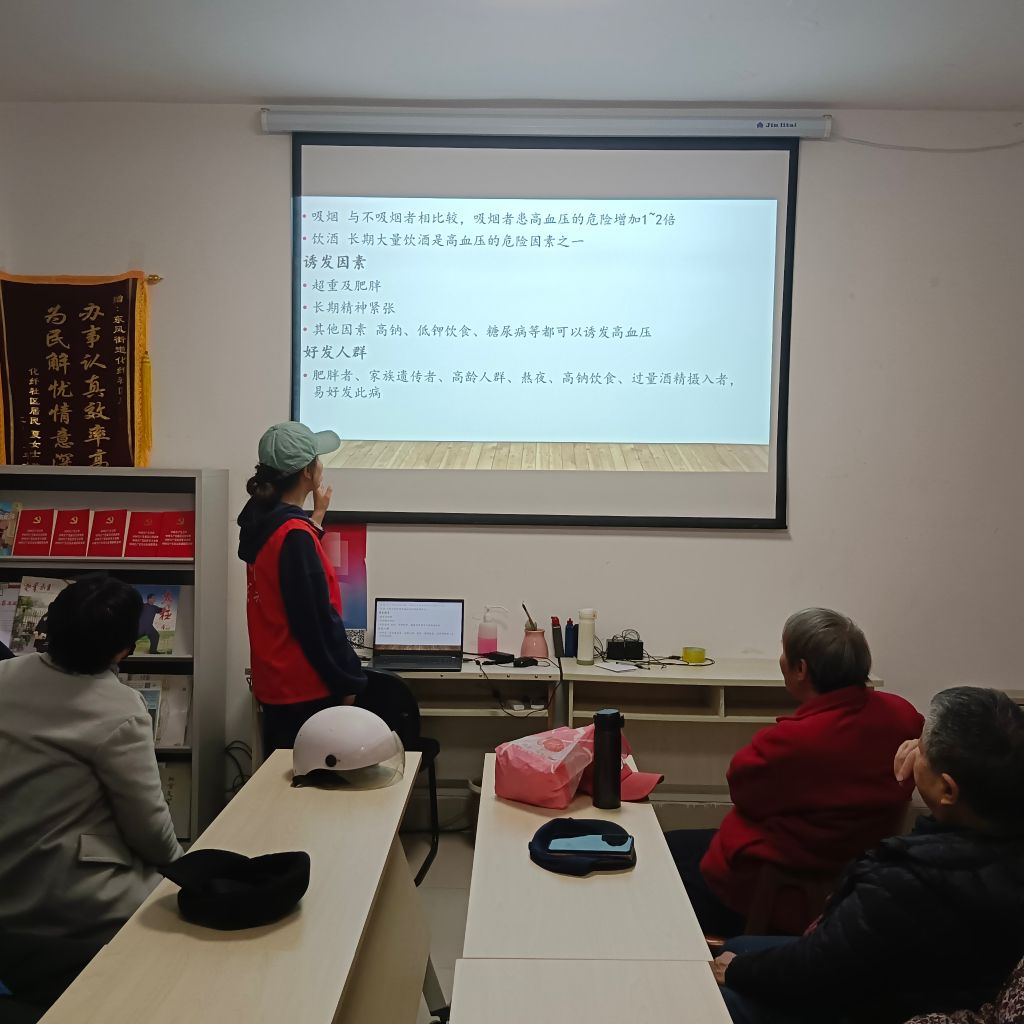 为提高辖区老年人健康素养,增强社区老年人的身体健康,满足辖区老年人对健康知识的需求。3月22日,东风街道社工站开展了“岁月静好,悦活养生”老年健康教育小组第二节活动,此次小组活动以“守护健康--高糖葵花宝典”为主题,主要为小组成员讲解有关高血压、糖尿病的知识。