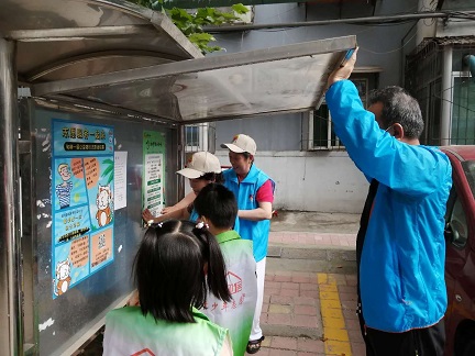 2020年7月17日,甸柳第一社区居民回家路上往楼院宣传栏看的时候发现了些许不同,宣传栏里两张花花绿绿的海报吸引了居民的驻足。因社区老人比较多,有时候无法从线上获取信息,甸柳一居将通知在线上发布的同时再往宣传栏再贴一份的习惯被保留和延续了下来。