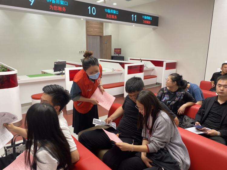 (社工给新人发放“喜事新办倡议书”)