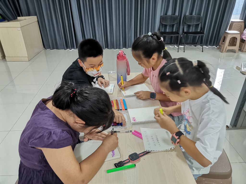 (图2 “锦豆治理团”团员根据社区观察结果分组书写“锦囊妙计”)