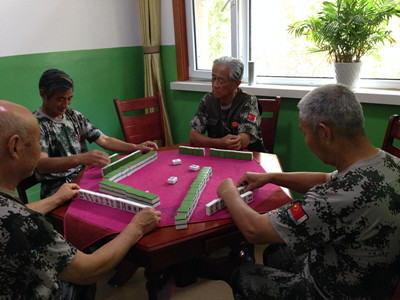 为丰富优抚对象精神文化生活,增加休养趣味性,社工结合优抚对象需求,带领优抚对象成立棋牌兴趣小组。经过长期的观察,挖掘麻将发烧友、棋艺超绝的优抚对象——王延杰担任小组金牌讲师,教给棋艺稍逊点的老战友。自成立棋牌兴趣小组后,王延杰每天教优抚对象两小时,带领6人学会了麻将,并爱上这一娱乐方式。