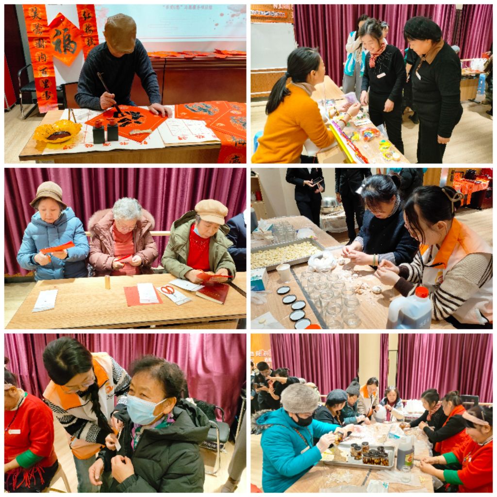 多元市集暖意融。社工站与后坡街社区对接联动,链接街道“善爱U悠”项目资源,以公益市集的形式,为出行方便的活力老人搭建多元参与平台。从安全知识普及,到义诊健康咨询,到书写“福”字、编织中国结、剪出传统画,再到腊八蒜制作、腊八粥品尝,处处活跃着服务对象身影,洋溢着欢声笑语,展现出了积极的参与热情。尤其是腊八蒜制作环节,社工站、服务对象及社区“智囊团”分工明确,乐在其中,从剥蒜、装罐、撒盐放糖、到醋、封盖……每个环节都体现了参与者对出行不便的困难群体的深切关怀,也彰显了互助共助的氛围。