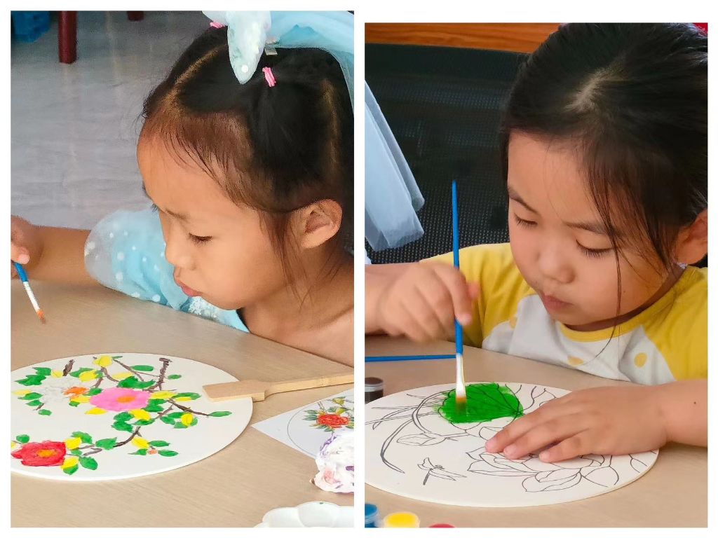 本次活动是乐趣童年“友”你“友”我——儿童手工兴趣小组第三节。团扇是中国传统手工艺品,凝结了中国传统文化内涵。以彩绘团扇为主题,既能够锻炼儿童的动手能力,丰富儿童暑期生活,也能够促使儿童感受和学习传统文化的内涵。