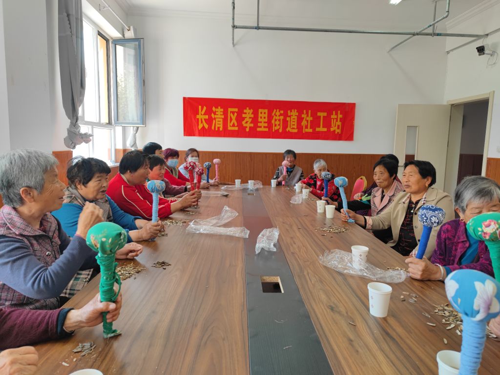 此次活动,社工的作用不仅仅体现在教学指导上。他们还积极引导老人们互相交流、互相帮助,让原本互不相识的老人在共同制作艾草锤的过程中,逐渐熟络起来,建立起深厚的友谊。社工们搭建起的这座沟通桥梁,打破了老人之间的隔阂,营造出温馨和谐的社区氛围。